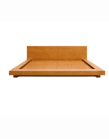 A premium solid acacia wood bed with a modern minimalist headboard, offering durability, comfort, and timeless elegance for contemporary bedrooms.