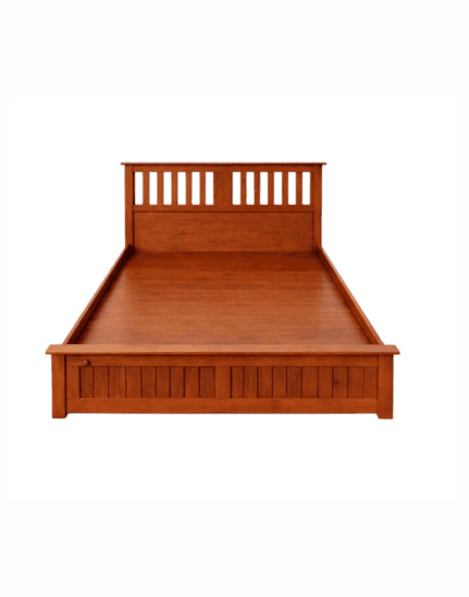 A premium solid wood bed with a modern headboard and smooth polished finish. Designed for strength, stability, and everyday comfort, it adds a warm and elegant touch to any bedroom.