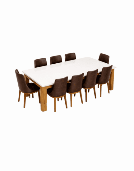 A premium modern dining table crafted with a solid acacia wood base and refined tabletop. Designed for durability, stability, and timeless minimal aesthetics, the Monarch Prime Dining Table is ideal for elegant dining spaces.