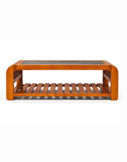 A premium Royal Acacia Coffee Table crafted from solid wood with a sleek glass top and functional lower shelf. Designed for modern interiors, it offers durability, elegance, and everyday practicality.