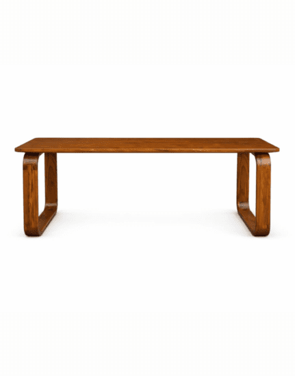 A premium solid acacia wood coffee table featuring a modern minimalist design with curved legs and a smooth rectangular top, crafted for durability, elegance, and everyday luxury.