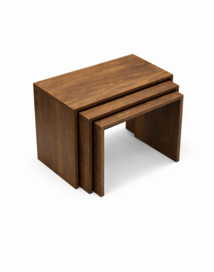 A modern set of three solid Acacia wood nesting tables designed for flexible, space-saving elegance in contemporary interiors.