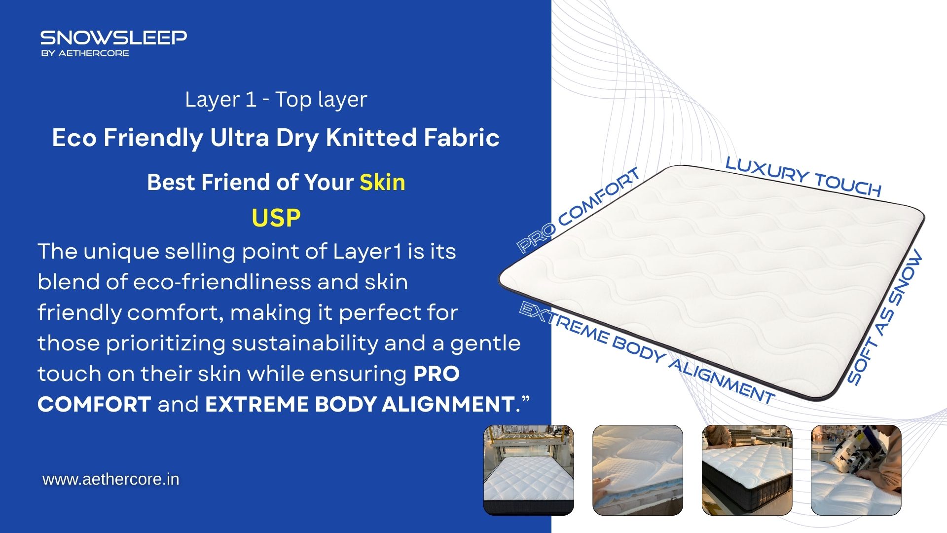 Skin-friendly, breathable top fabric that ensures superior comfort and body alignment. Ideal for sensitive skin and sustainable living.