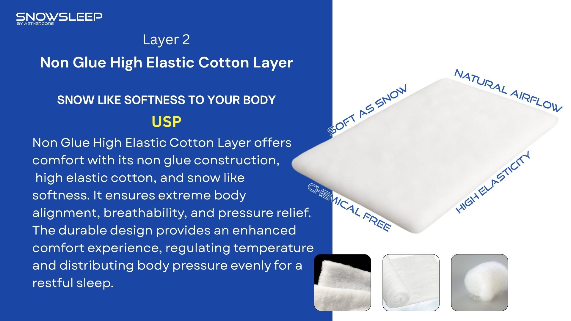 Provides snow-like softness with chemical-free comfort, natural airflow, high elasticity, and pressure relief.