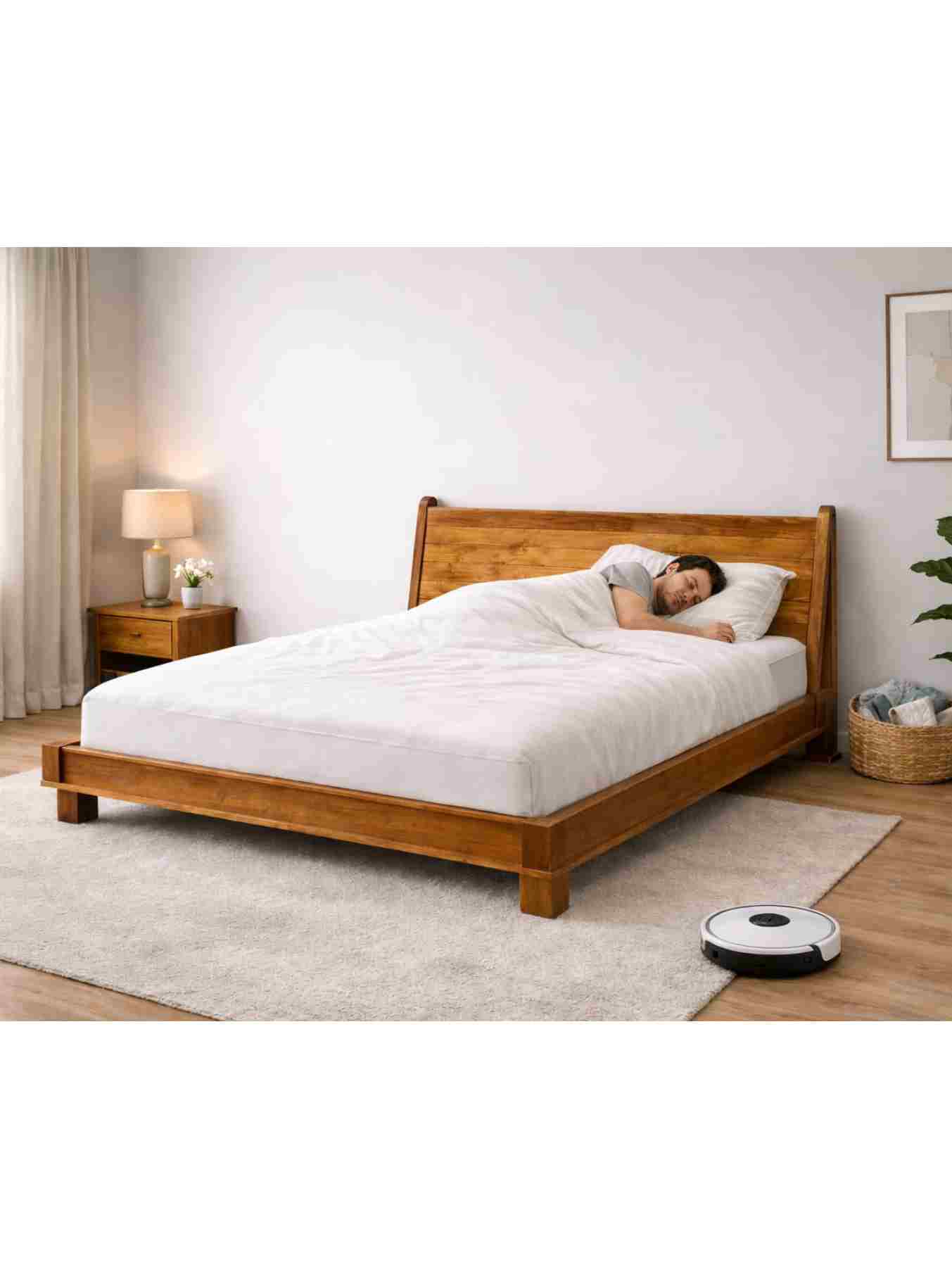 The Arvela Solid Wood Platform Bed from VANWOOD by AETHERCORE showcases the beauty of natural wood combined with modern minimalist design. Crafted from premium solid hardwood, this bed frame features a distinctive angled headboard that provides both ergonomic support and a sophisticated visual appeal.