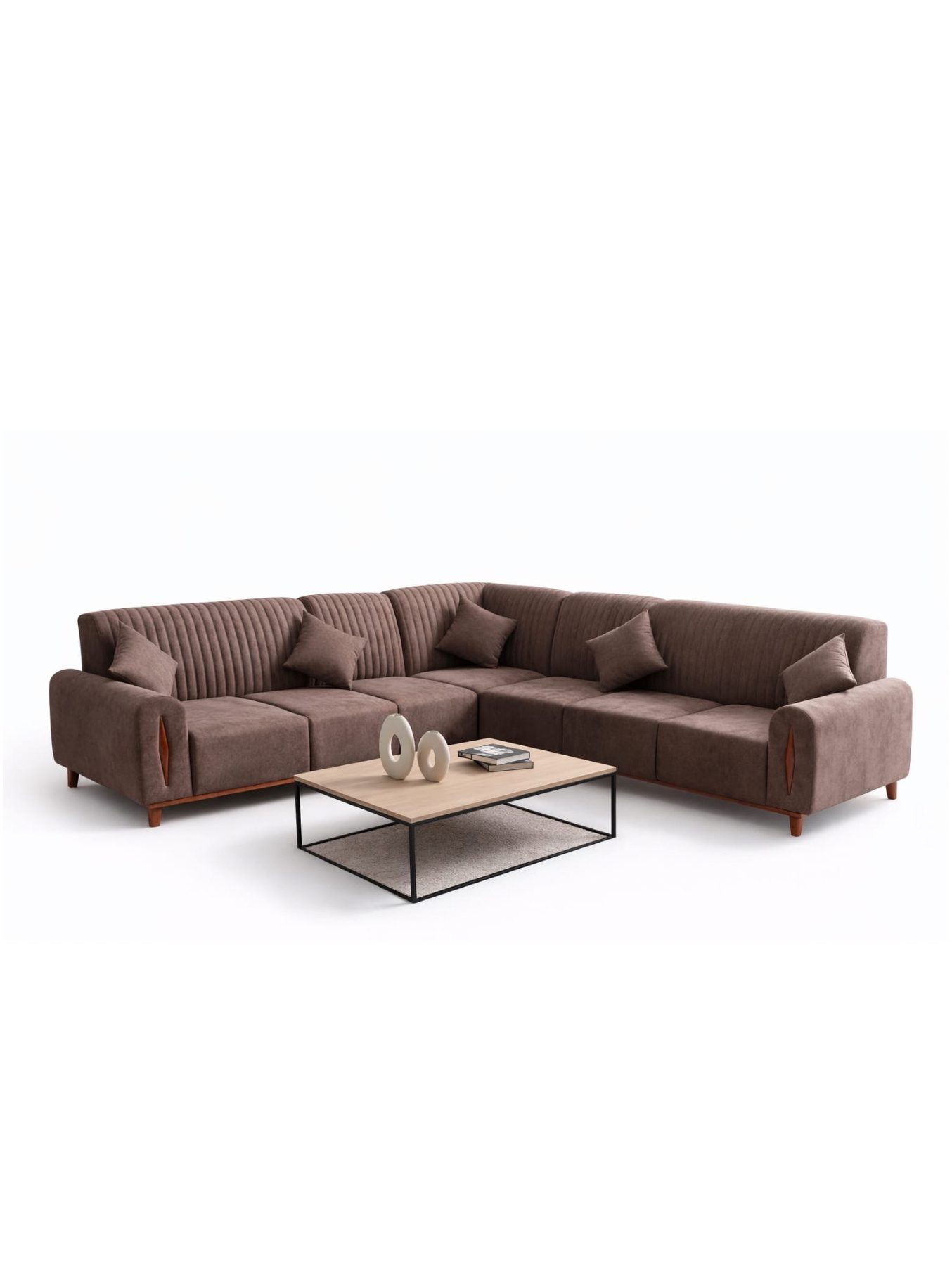 The Ravello Luxe Corner Sectional by VANWOOD by AETHERCORE is designed to bring depth, warmth, and structure into modern interiors. Its rich cocoa brown upholstery paired with vertical channel stitching creates a refined yet inviting presence. The L-shaped layout maximizes seating without overwhelming the space, making it ideal for both everyday relaxation and elevated living room styling.