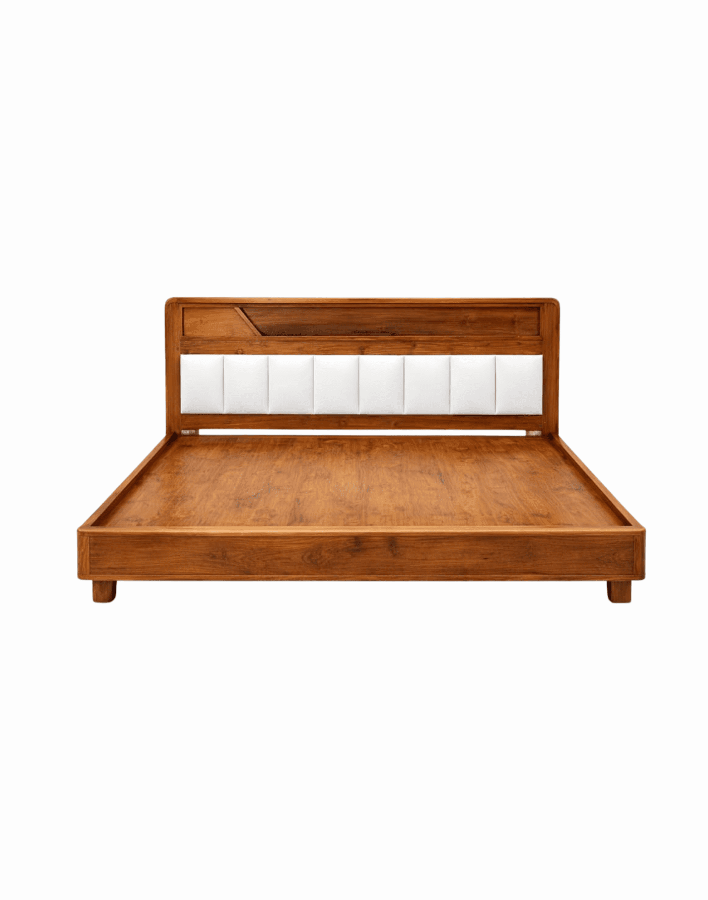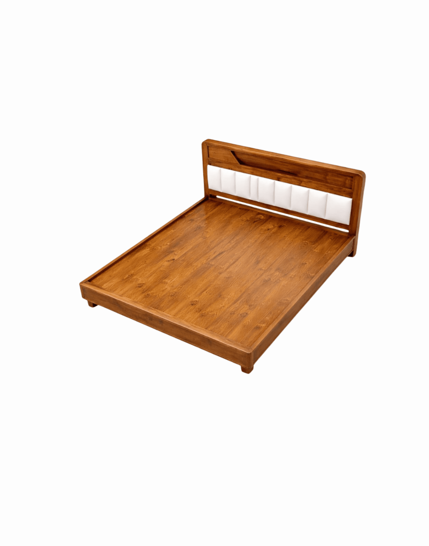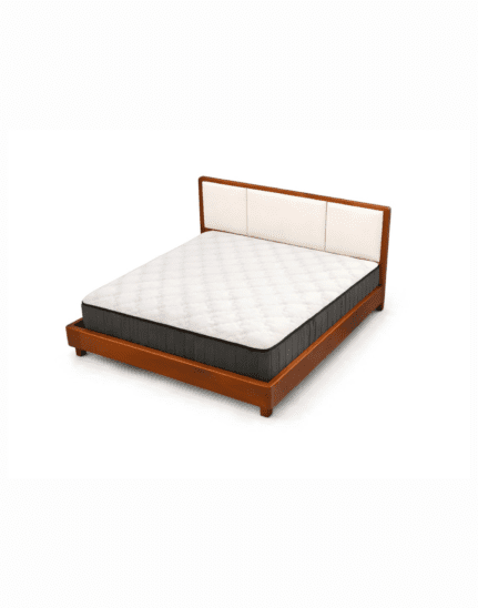 A premium solid acacia wood bed with a minimalist design and upholstered padded headboard, offering durable support, refined comfort, and timeless elegance for modern bedrooms.